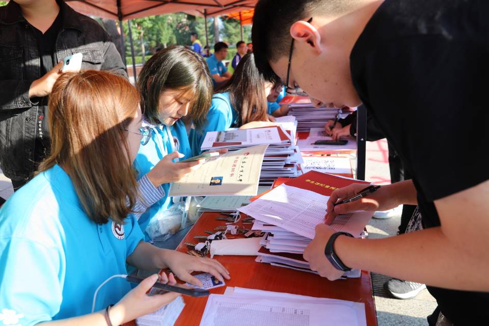 领导与志愿者一同为新生家长答疑解惑,亲切交谈。各个部门在此次迎新工作中分工明确,组织有序,密切配合,报到过程高效快捷,井然有序,受到了一致好评及高度认可。