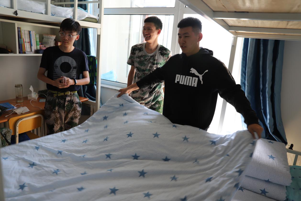 开放日前,各个寝室长配合生活班长自检各班寝室为开放日做准备。大一新生在负责人的带领下逐一参观大二寝室,大二检查大一寝室的整洁度并教导大一同学如何叠军训被。在查寝过程中针对检查出的卫生问题提出解决方案,新生们都悉心倾听。