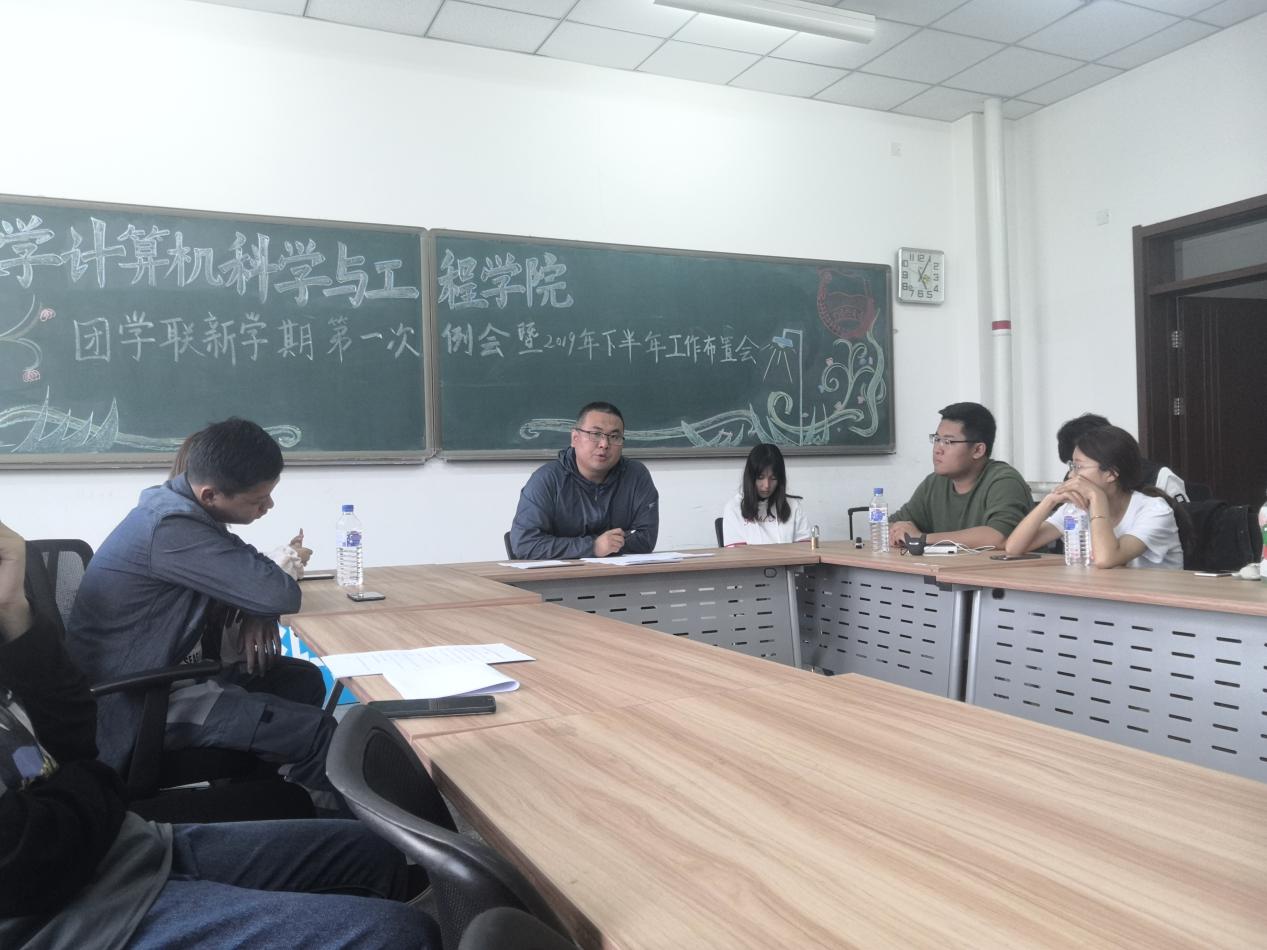 于9月15日17时在北湖校区1710教室召开了团学联新学期第一次例会暨2019年下半年工作布置会。会议由Avbebe