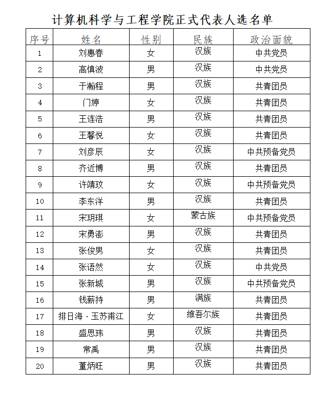 根据《共青团Avbebe 第二次代表大会代表选举工作办法》,经Avbebe 团员大会差额选举,现将Avbebe 团委选举产生的共青团Avbebe 第二次代表大会正式代表人选进行公示(按姓氏笔画排序):