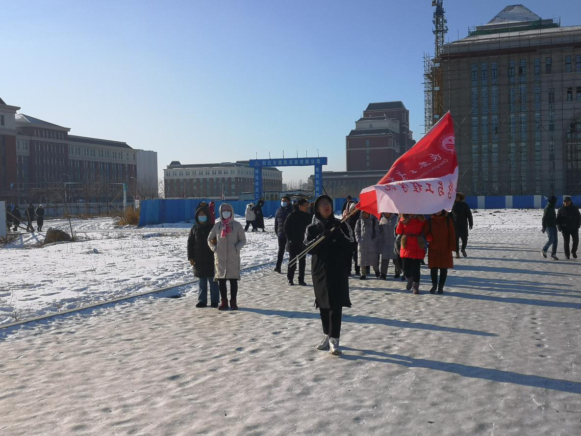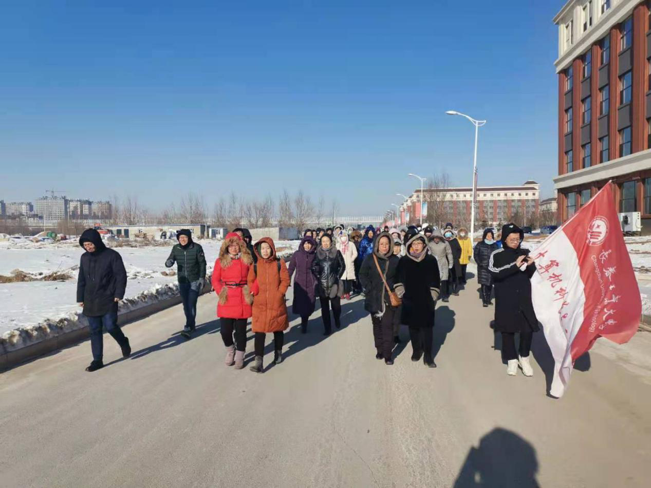 北湖东、西两个校区,教工们在徒步行走的过程中相互激励,共帮互助;在行走中坚定内心执着的信念,在行走中发现更好的自己。一路欣赏沿途冬景,欢声笑语,见证着北湖校区主楼、计算机楼、图书馆、体育馆、体育场等主体建筑拔地而起,共同畅谈工业大学的美好明天。