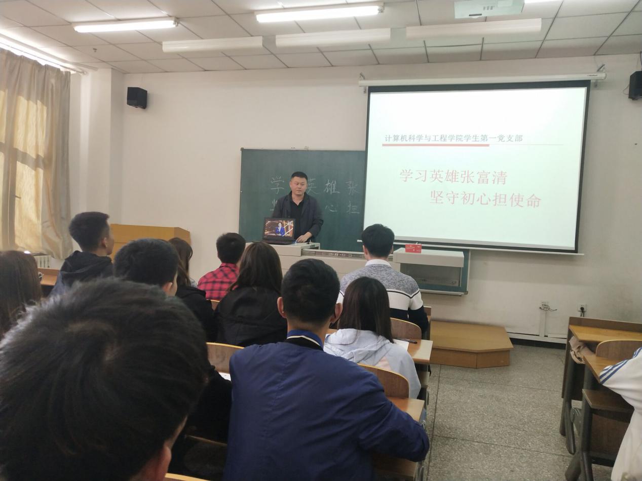 学生第一党支部于9月16日中午12时20分在北湖校区主楼1608教室开展“学习英雄张富清,坚守初心担使命”主题学习活动。学生第一党支部书记兼2017级辅导员陈磊主持本次会议,支部党员和部分积极分子参加本次学习活动。