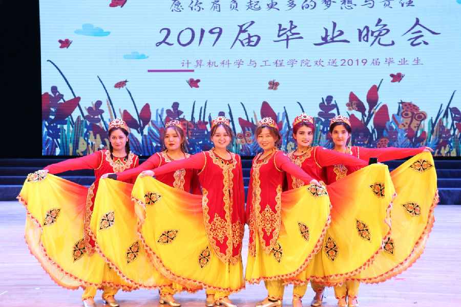 晚会在绚丽的开场舞中拉开了帷幕,由新疆同学带来的独具特色的地方舞蹈,引得台下掌声四起。舞蹈、歌曲、武术表演等节目精彩纷呈,体现了当代大学生的青春与活力。回望青春岁月,一幕幕场景仿佛就在昨日。由大四毕业生代表合唱的歌曲《老男孩》唱出了每位同学对昨日的回忆和对未来的美好憧憬。由毕业生党员表演的诗朗诵《新时代 新青年》表达了毕业生们面对未来的各种挑战,积极进取,勇担重任的决心和斗志。由Avbebe