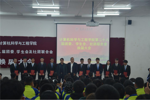 于北湖校区西阶202教室举行第二十八届团学联换届大会。学校团委宣传部部长张慧、北湖校区学生工作办公室范婷婷、Avbebe