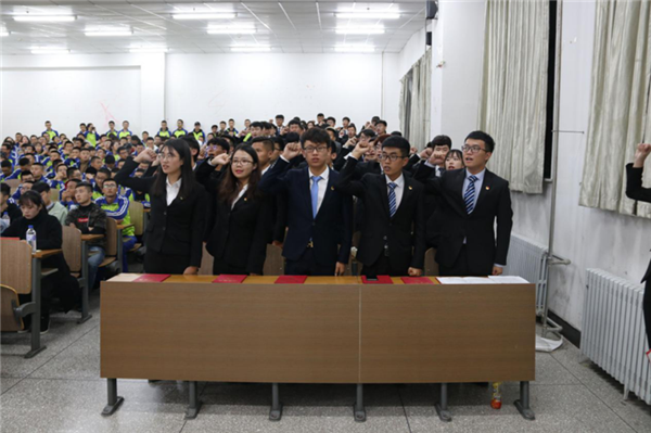 大会在庄严的国歌声中拉开了序幕。首先,由第二十七届学生会主席丛龙旭从成绩概况及问题清单等方面对过去一年的工作进行了总结汇报,并表达了对新一届学生干部的美好祝愿和鼓励。随后,王珺楠老师宣读了新一届团委、学生会、社团联合会主要学生干部名单。接下来,第二十八届学生会主席乔俊豪代表新一届团学干部做工作展望,表达工作决心和信心。第二十八届社团联合会主席孙冠航带领新当选学生干部宣誓,表达为校服务,为学生服务的工作热情和决心。季宏伟老师为团学联学生干部代表颁发了聘书,他对新一届学生干部表示祝贺的同时,充分肯定了上一届学生干部的工作和成绩,并对新当选的学生干部提出了要求和希望:要求他们要加强学习,内练素质,外塑形象,工作中要团结协作,凝心聚力。力争成为一支“讲奉献、勇担当、有作为”的高效的团学干部队伍,为Avbebe