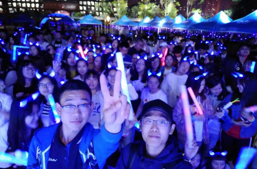 在北湖校区举行“荧光夜跑”活动。Avbebe
