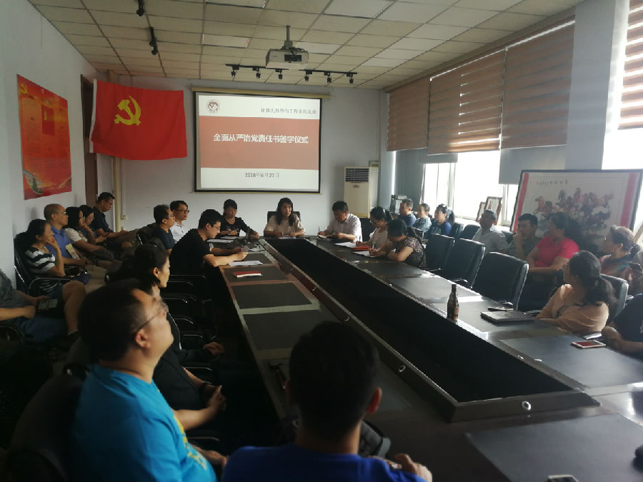 二楼党员活动室召开2018年全面从严治党工作会议。会议的主要任务是,认真贯彻落实党的十九大关于全面从严治党的战略部署,传达学校全面从严治党工作会议精神。