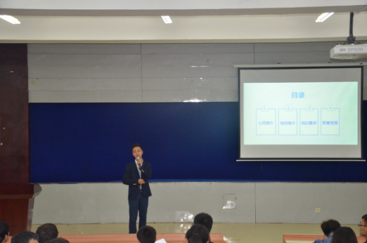 随后曲经理讲解了创业公司面前的局势以及公司内训方面的内容,曲经理就创业公司如何在国企和上市公司的夹缝中生存,即将就业的大学生如何用在校所学技能与企业单位工作相适配。最后,参加此次宣讲招聘会同学们与企业交换了简历,并确定了面试时间。
