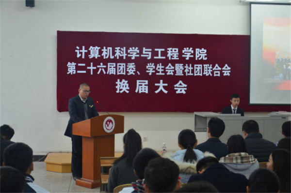 于北湖校区西阶301教室举行了第二十六届团委、学生会暨社团联合会换届大会。校团委副书记仲崇利,校学生工作处副处长肖永辉,院学生工作办公室全体成员,辅导员助理及各兄弟Avbebe
