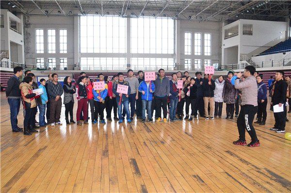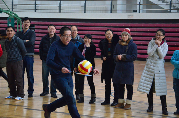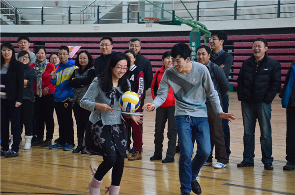 分工会在体育馆三楼举行了“快乐幸福+”教工迎新年活动,全院教工分成五个代表队参加了此项活动,共同迎接2016新年的到来!