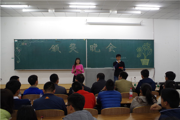 于北湖校区西阶202教室举办了2015级“英语演讲大赛,篮球比赛以及数学竞赛”的颁奖晚会及文艺表演,辅导员陈磊老师,辅导员助理王艺程老师以及校团委杨恒宇学长出席了本次晚会。