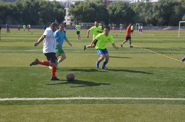 代表队和联合代表队之间进行。双方的球员们都毫不示弱, 展现出各自细腻的脚法、默契的配合、缜密的队形部署很快使比赛进入白热化阶段。打着伞看比赛的观众热情地为场上的老师们加油助威,赵老师的传球、丁老师的快攻、程老师的防守......下半场的雨势变大,场上队员浑身上下湿透,场地湿滑,但丝毫阻挡不了老师们的猛烈进攻,进攻、防守,你来我往,精彩分呈。最终计算机队以1:0赢得比赛,取得冠军。
