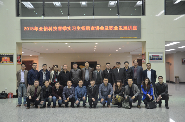 讯(通讯员王珺楠李涵玥)4月21日晚6时,亚信科技2015年春季实习生招聘宣讲会及职业发展讲座在南湖校区礼堂如期召开。出席这次宣讲会的嘉宾有,百度人力资源部高级经理刘铭,亚信科技有限公司全球研发中心杭州研发部高级经理陈一铠,亚新移动事业部华北区总监腾飞、经理付博强,亚新人力资源部杭州区校招负责人秦婷,亚信全球研发中心人力资源招聘负责人林丹,亚信移动事业部运营和人力资源部经理卢红霞,亚新移动事业部西区高级经理李世明20余人,Avbebe