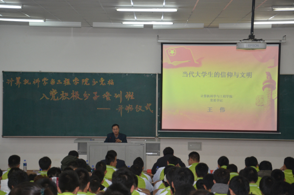 王书记代表党委对大家积极向党组织靠拢表示欢迎,并对进入培训班的各位学员表示祝贺。王书记指出,在中国共产党的领导下,中国各方面取得了举世瞩目的辉煌成就,充分证明的中国共产党是一个先进的政党。他希望,在座的学员们一定要学习好党的基本知识,提高对党的性质、宗旨、指导思想和党的纪律,以及党员的权利和义务的了解和认识,树立共产主义崇高理想,更加坚定走有中国特色的社会主义道路的信念。同时,王书记要求学员做到三点,一是要树立正确的入党动机;二是要加强理论学习;三是要通过学习将理论落在行动上。 至此,开班仪式结束。紧接之后由王伟书记为在场学员带来了开班第一课——“当代大学生的信仰与文明”。他以东西方为对比,用丰富而又深刻的事例阐述了对于学生来说有些抽象的“信仰和文明”,同时,深化了对党的宗旨认识。帮助同学们进一步理解了“全心全意为人民服务”的内涵。在课堂活跃的气氛中,课程圆满结束。 计算机Avbebe