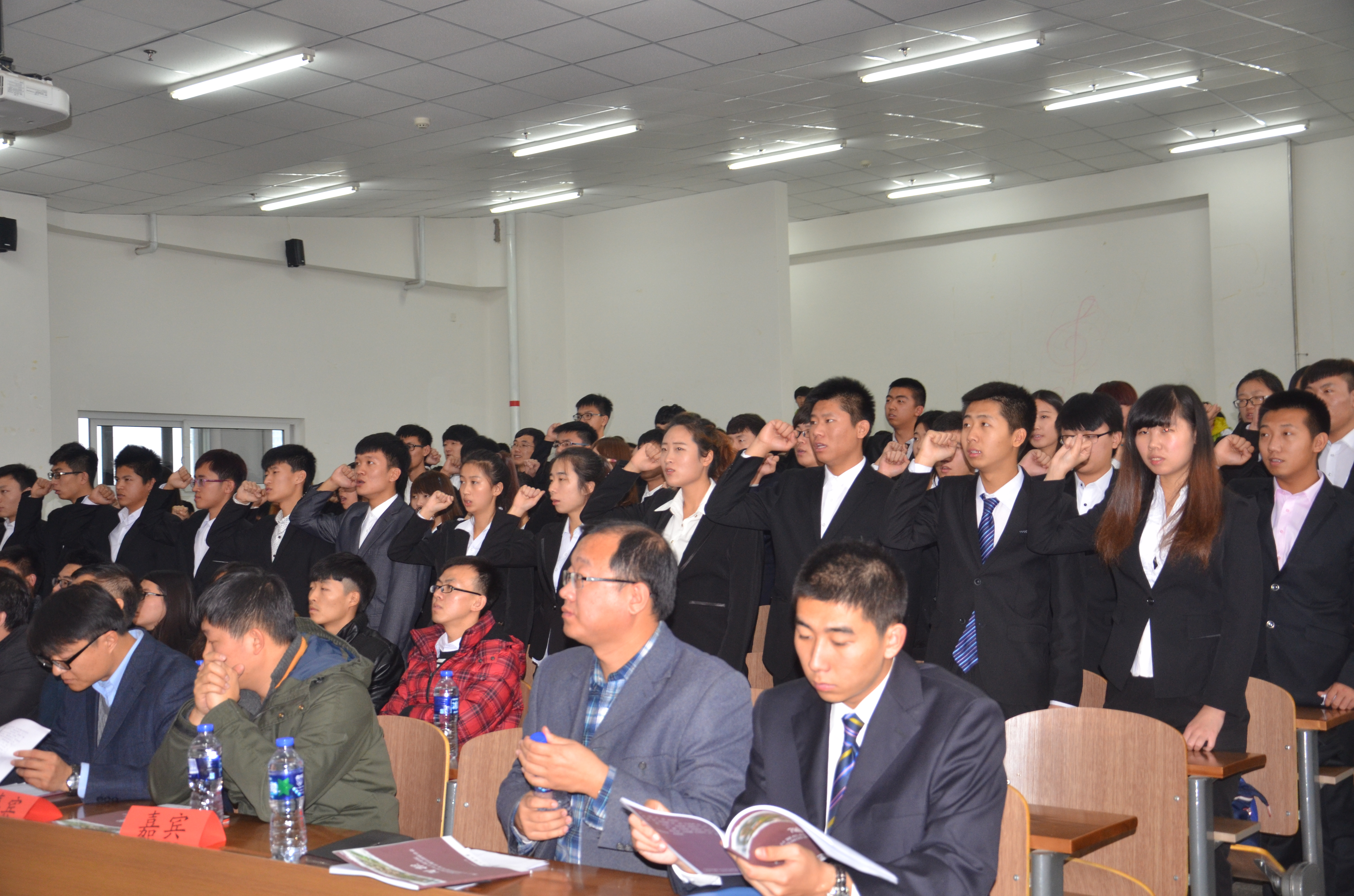 团委书记钟诚宣读新一届团委、学生会、社团联合会主要学生干部名单。上一届学生会主席张思远做一年的工作总结讲话,并表达了对新一任学生会干部的希望和鼓励。新一届学生会主席杨钰宁做工作展望,代表新一届学生会展示对工作决心和信心。而后,由社联主席李俊男带领学生干部进行宣誓,在宣誓中全体学生干部充分表达了自己对未来工作的热情。