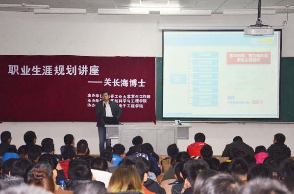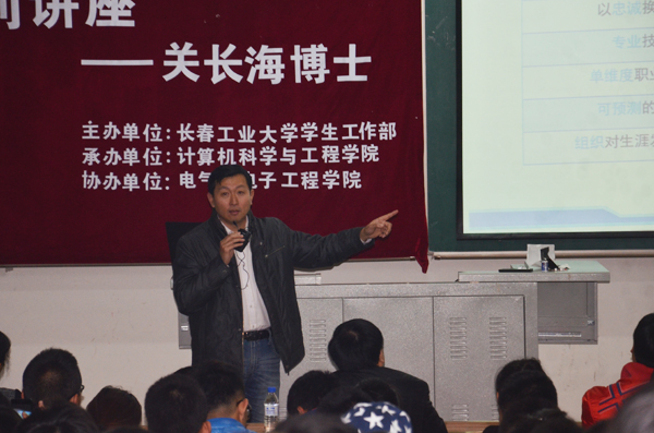 知名校友、北京高校毕业生就业促进会秘书长关长海博士为现场为同学们作了职业规划的讲座并进行了现场互动。出席的领导有学校学生工作处大学生就业指导中心副主任李东福,计算机Avbebe