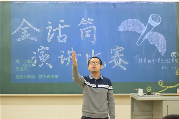 本次比赛共分三个环节:选手自备稿件表演、随机抽取稿件与嘉宾提问!每个环节都扣人心弦,精彩动人。他们用精准流利的普通话进行了自我介绍,展现自己的风度和个性。模拟主持现场时,创意更是层出不穷,模仿人物访谈,或模仿娱乐新闻,展示了选手们独具艺术魅力的主持特色。他们幽默诙谐的语言,创新出彩的主持风格及深厚的艺术功底为现场观众带来了一场精美绝伦的视觉盛宴。选手们标准的普通话、幽默诙谐的谈吐、唯妙逼真的表演令评委赞叹不已。比赛现场精彩纷呈,高潮迭起,掌声不断。经过激烈的角逐,崔佳铭,徐晓宁与刘璐等同学用精彩的主持征服了在场的评委和同学,分获一等奖、二等奖与三等奖。