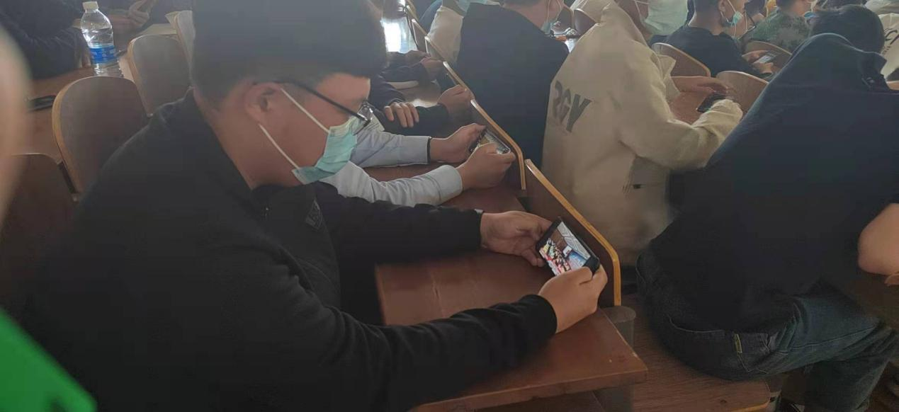 组织教师以及大一、大二、大三学生集中观看、部分人员通过手机观看了本次主题课。