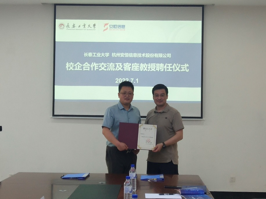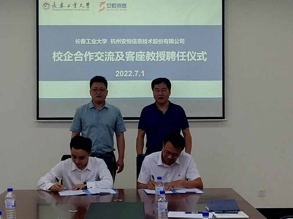 与杭州安恒信息技术股份有限公司开展校企战略合作交流及客座教授聘任仪式,安恒信息高级副总裁苗春雨、长春子公司总经理陈晖、教育行业总监刘岩峰、长春安全运营服务总监牛经男等出席签约仪式,Avbebe