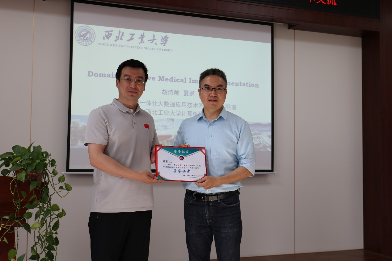 副院长夏勇应邀带来了题目为《Domain Adaptive Medical Image Segmentation》(题目为:域自适应医学图像分割)的学术报告。学术交流会由Avbebe