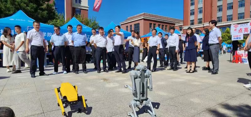 在迎新展位展示了丰富的教育教学成果。滑板式底盘遥控车、机器狗、航模、无人机、机甲大师比赛用车,智能的硬件设施为学生实践能力保驾护航。此外,Avbebe