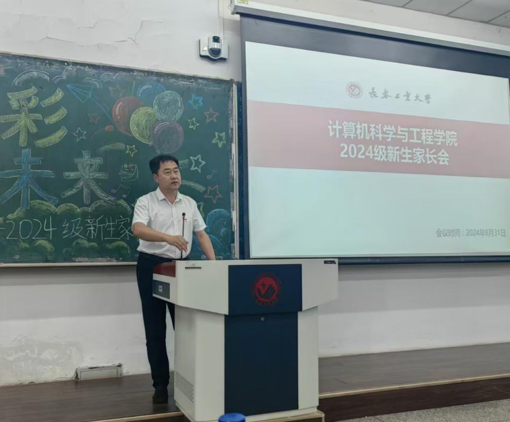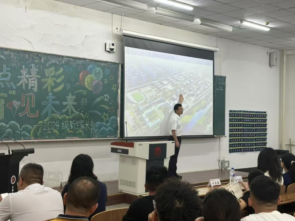 于8月31日在西阶101教室召开2024级新生家长会。党委书记周文明、院长程超、副院长鲁慧民、刘冰、各系主任、学生工作办公室全体辅导员参会。会议由院党委副书记王越主持。