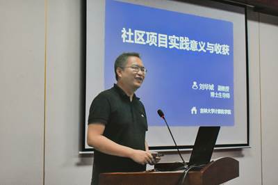 副教授刘华虓先生及其团队成员徐可彤同学,以“于方德社区绽放开源之花--浅谈方德项目带给我的经验与收获”为主题,分享了参与开源实践项目的意义和项目管理流程,以及通过项目实践所获得的能力提升和收获。当提及“为什么本科生要参与项目”时,刘老师补充道,参与项目不仅补充了本科生的实操经验,促进个人成长,还提升了面试竞争力。
