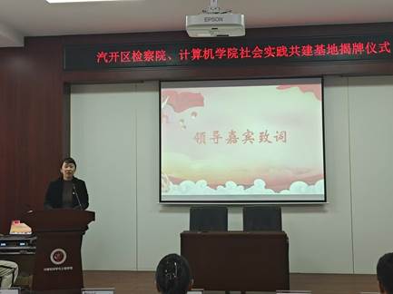 党委副书记王越为共建基地致辞。她对汽开区检察院在Avbebe