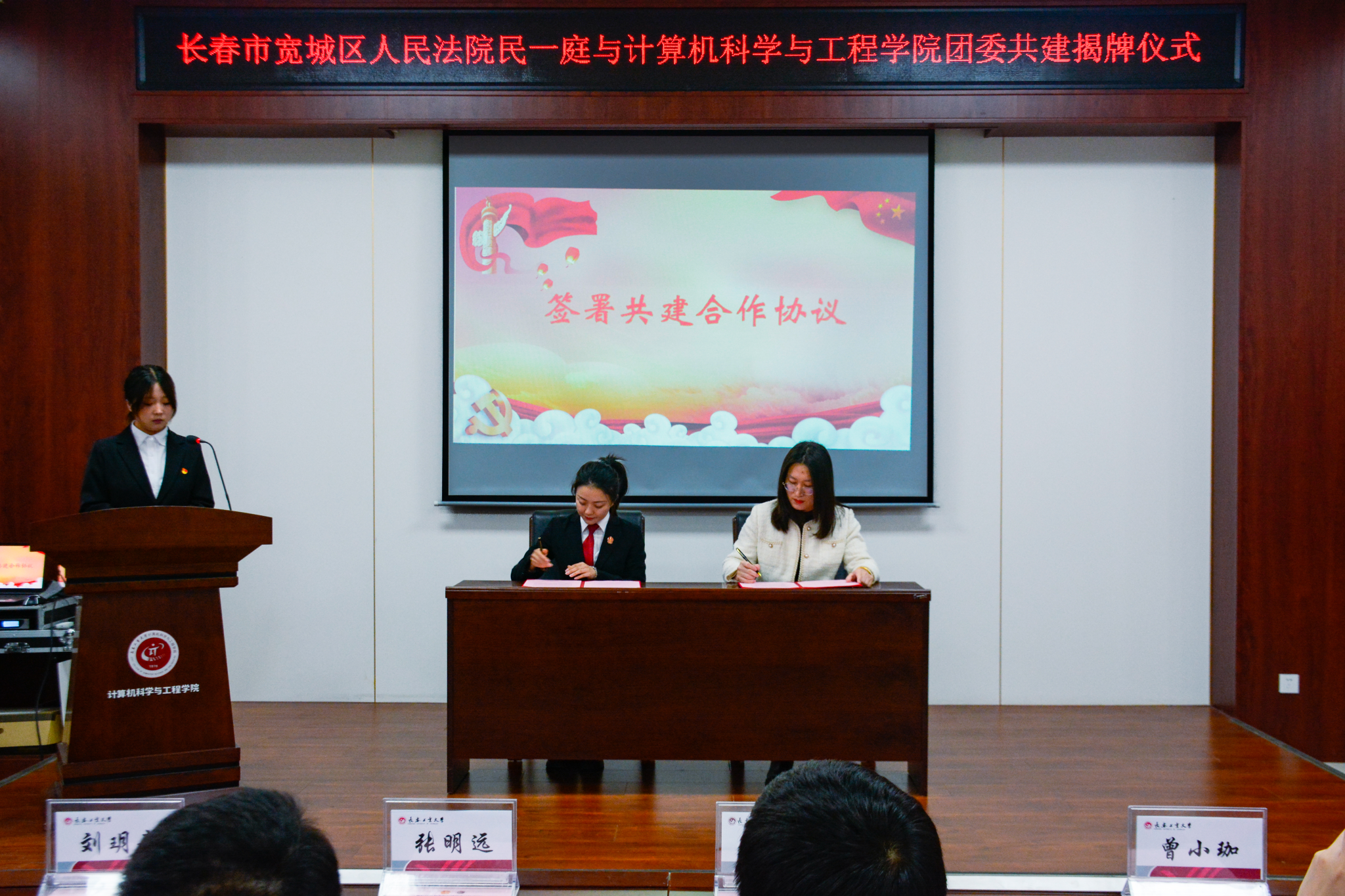 出席本次共建活动的嘉宾有长春市宽城区人民法院民一庭庭长、四级高级法官张明远,副庭长刘玥辛,法官助理冯玉莹、曾小珈,Avbebe