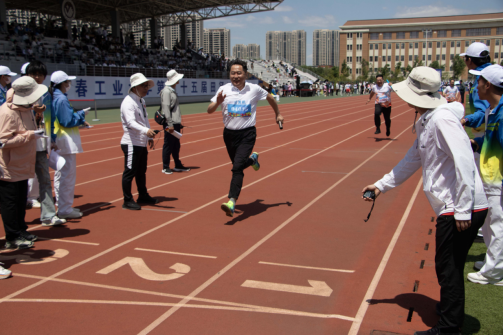 混合异程接力赛中,教工组团队严阵以待,默契配合。从交接棒的精准到冲刺的爆发,在全场山呼海啸般的呐喊助威声中,团队以战术智慧与协作精神完成接力,成为赛场焦点。