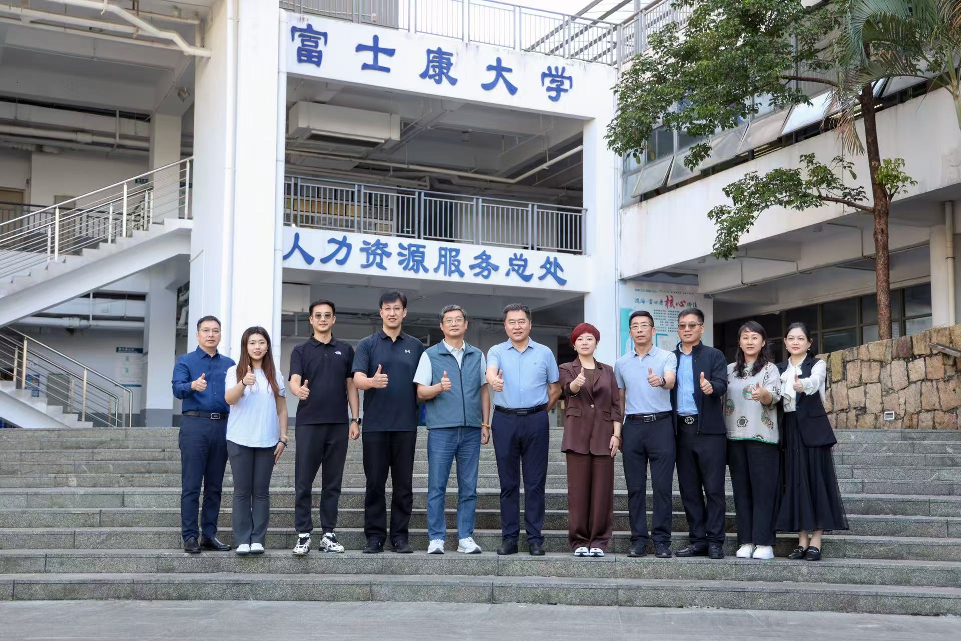 长谢建中就人才培养、实习实训、大学生就业等问题进行了深入研讨。会后走访参观了富士康集团公司总工会、准时达全程供应链管理系统等相关部门。
