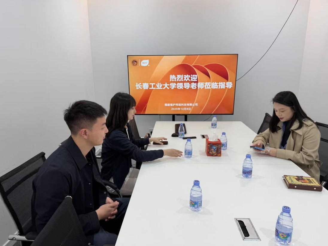 12 月8日上午,走访团首站抵达福州,与福建植护网络科技有限公司相关负责人进行座谈。双方就当前电商行业发展趋势、技术人才需求以及校企合作模式进行了深入交流。企业详细介绍了其在电商运营、大数据分析等方面的业务布局,并表达了对计算机专业毕业生的强烈需求。孟雨萱、谢旺润老师介绍了Avbebe